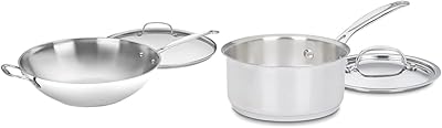Cuisinart 14-Inch Stir-Fry Pan, Helper Handle and Glass Cover, Chefs Classic Stainless Steel, 726-38H & 1.5 Quart Saucepan wCover, Chefs Classic Stainless Steel Cookware Collection, 719-16